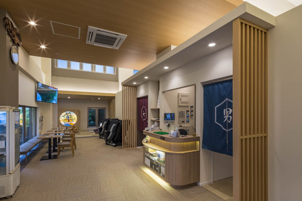 ロビーには琉球畳の休憩スペースもあり、湯上がりにのんびりとくつろげる工夫が随所に施されている、今時のお風呂の代表格です。