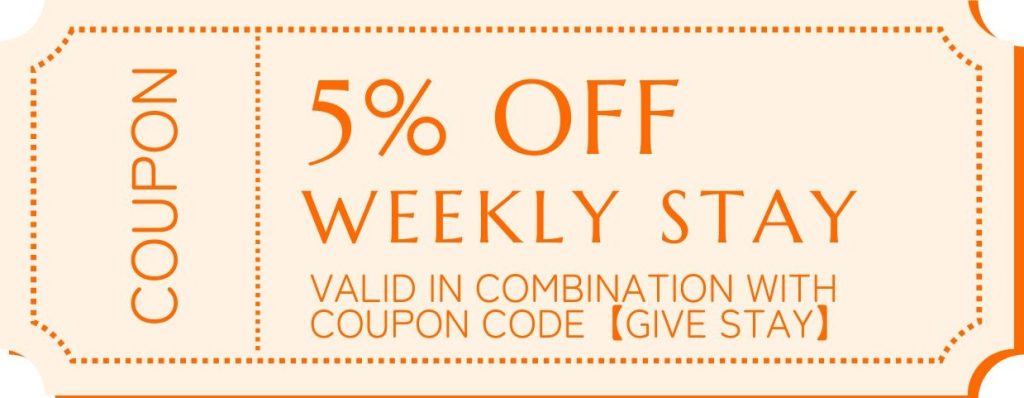 たとえば、アパートメント型ホテル「GIVE」でも、長期宿泊割として1週間以上で5%、1ヶ月以上で10%の割引が受けられるお得なプランが用意されています。